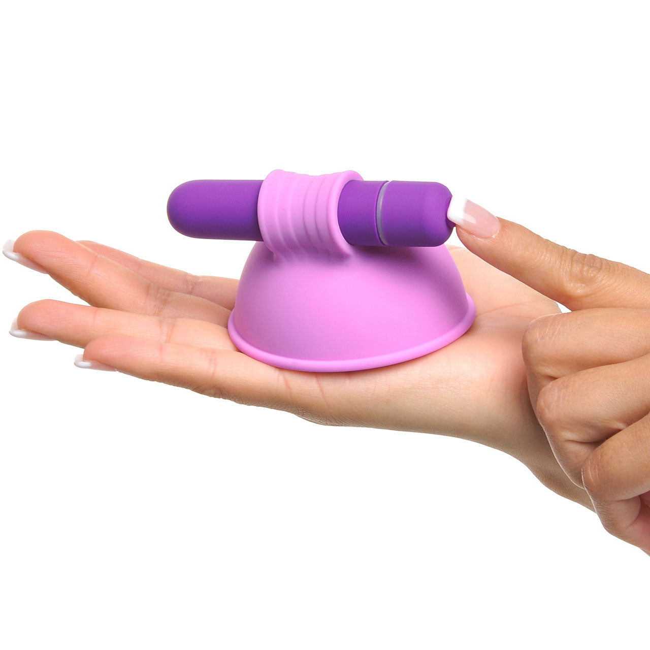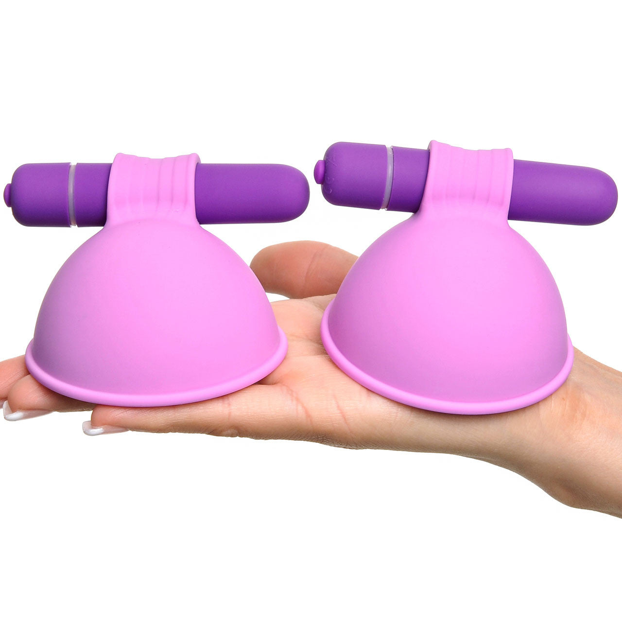 Pipedream's Fantasy For Her's Breast Suck-Hers are nice and big, fitting the peaks of most breasts. Firm, velvety silicone scoops lend a tight seal, simply press the cup portion firmly over a nipple to activate suction. Unlike some similar toys, these hold tight and ultra secure- they'll stay precisely in place while soft tickers inside buzz along single speed vibration.