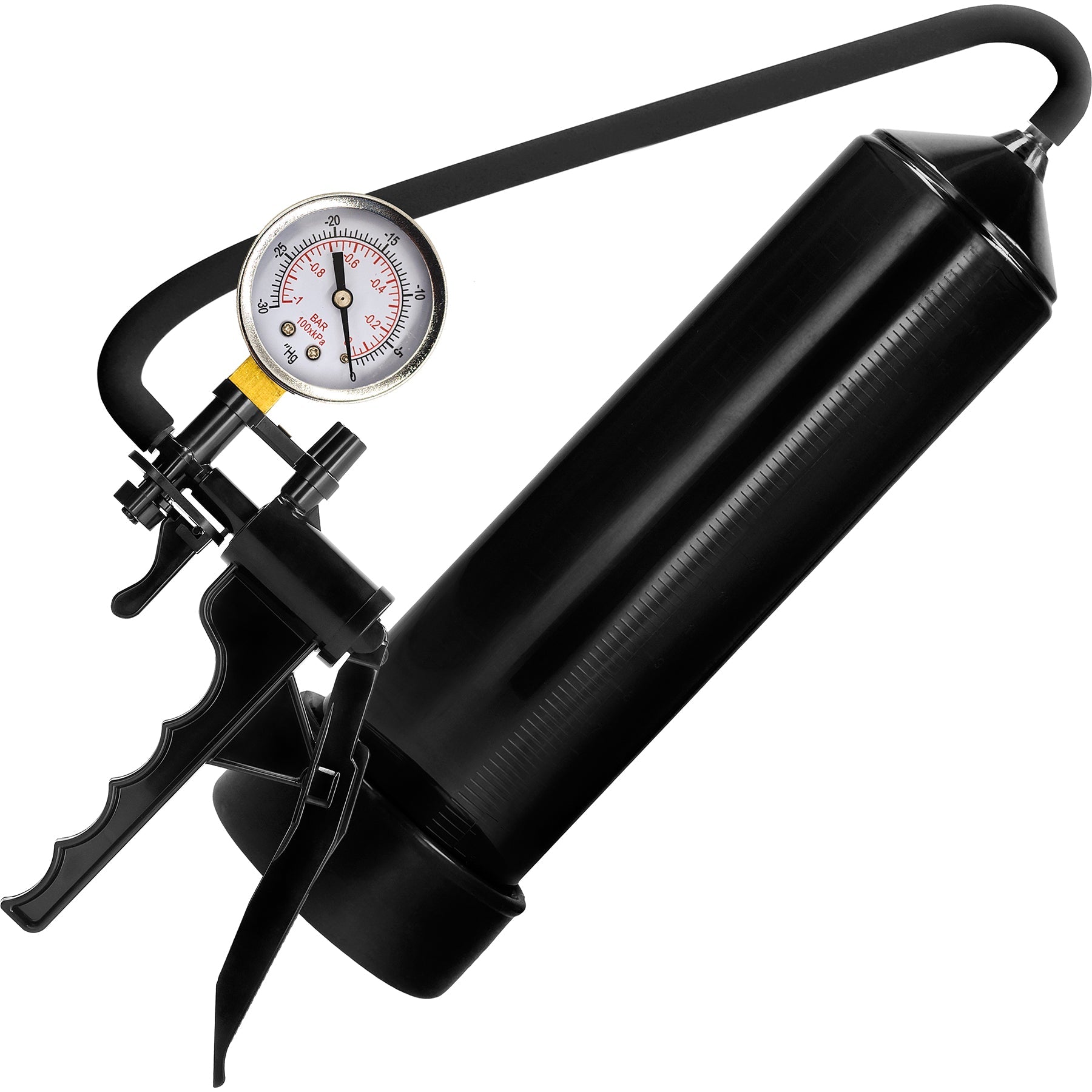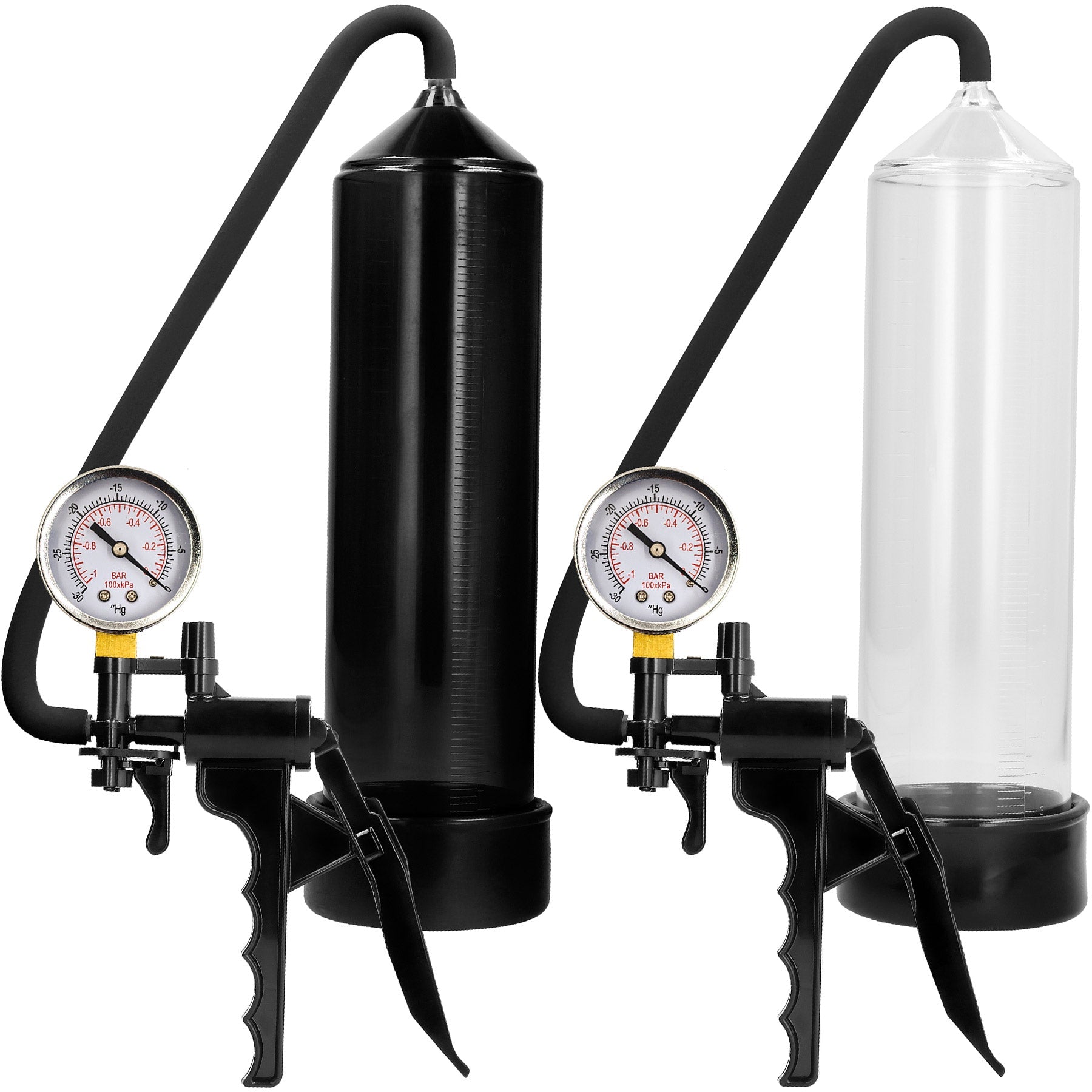 With a total cylinder length of 23 cm (9") and an inner diameter of 5.5 cm (2.17"), the Pumped Elite Beginner Penis Pump is a high-quality pump that gives you ample possibilities to grow in both directions! The total length of the hose is 25 cm (10") and the insertion sleeve is made of smooth silicone. This variant comes with a plastic pistol grip pump, a cylinder with gauge and a quick release valve for your comfort. Available in Black or Clear.
