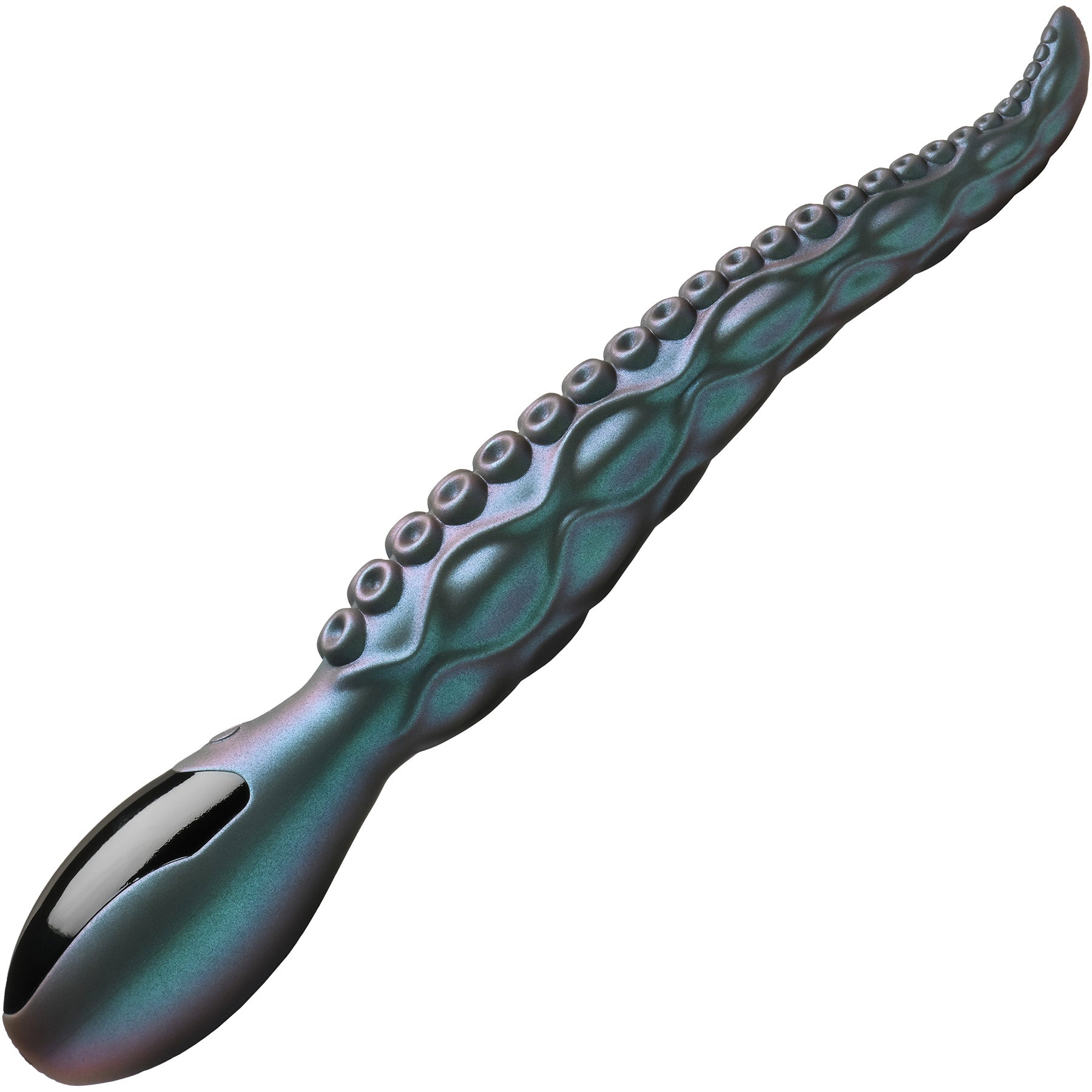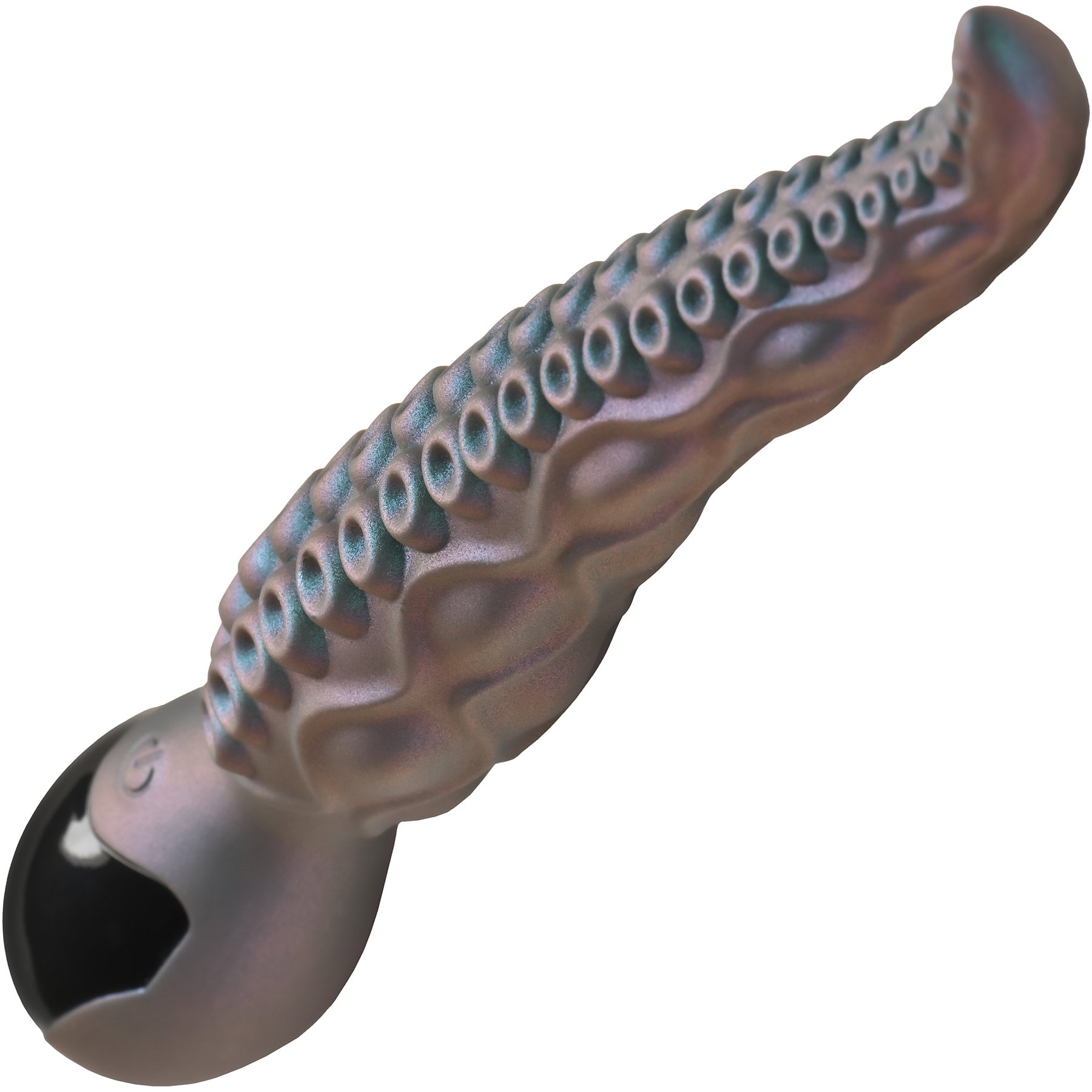 - Fantasy Vibrator: This tapered, textured, tentacle is covered with octopedal suckers and shines with a metallic, iridescent teal color. Grab hold of it via the round base and slide it inside!